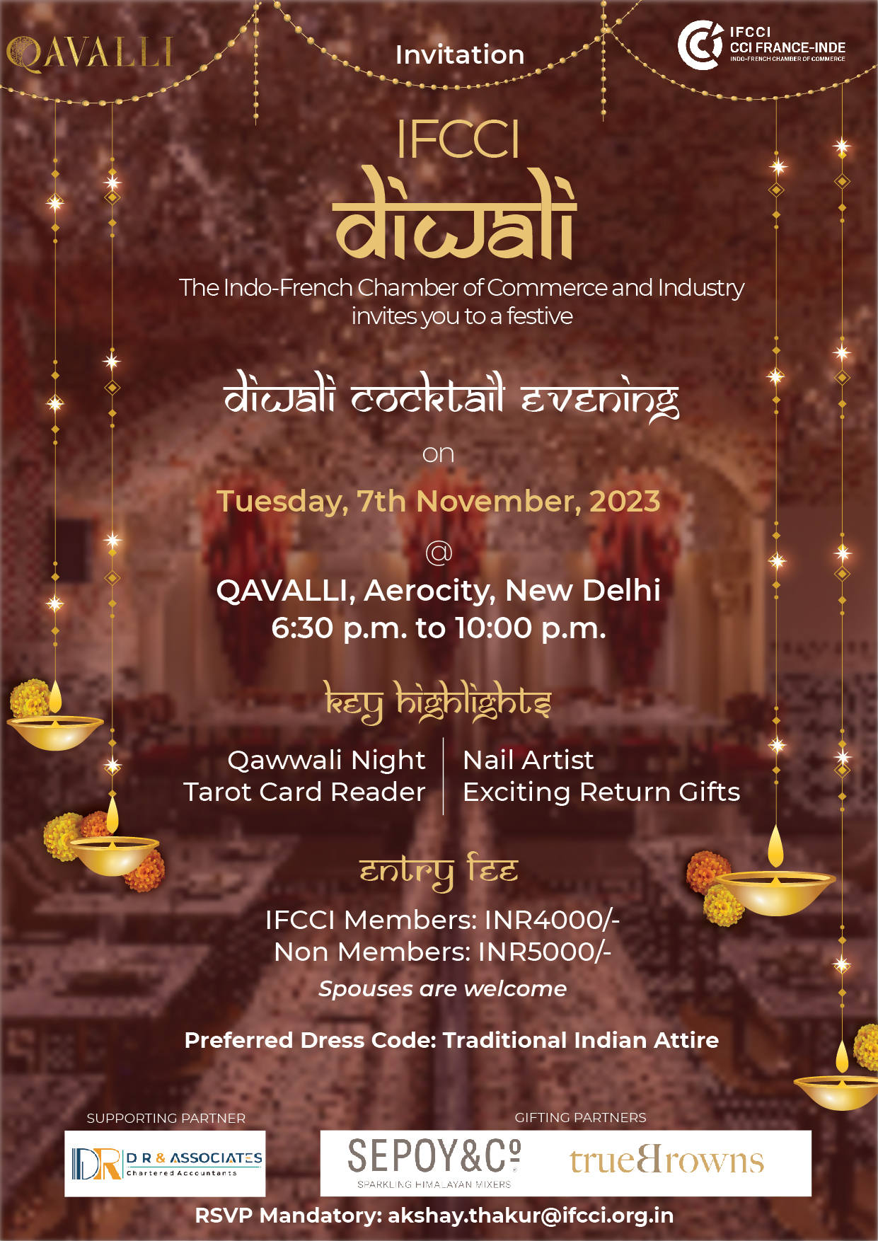 IFCCI is pleased to organize an all-member exclusive fun filled Diwali Cocktail Evening at Aerocity, New Delhi, on 7th November 2023.