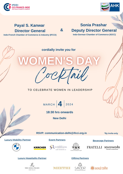 IFCCI in association with IGCC is organising the Women's Day Cocktail, on 4th March 2024, in New Delhi.
