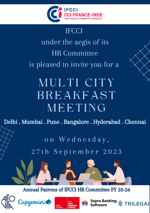 IFCCI HR Committee is organising a ‘Multi-City Breakfast Meeting’ being held on Wednesday, 27th September 2023 from 9:00am to 10:30am.