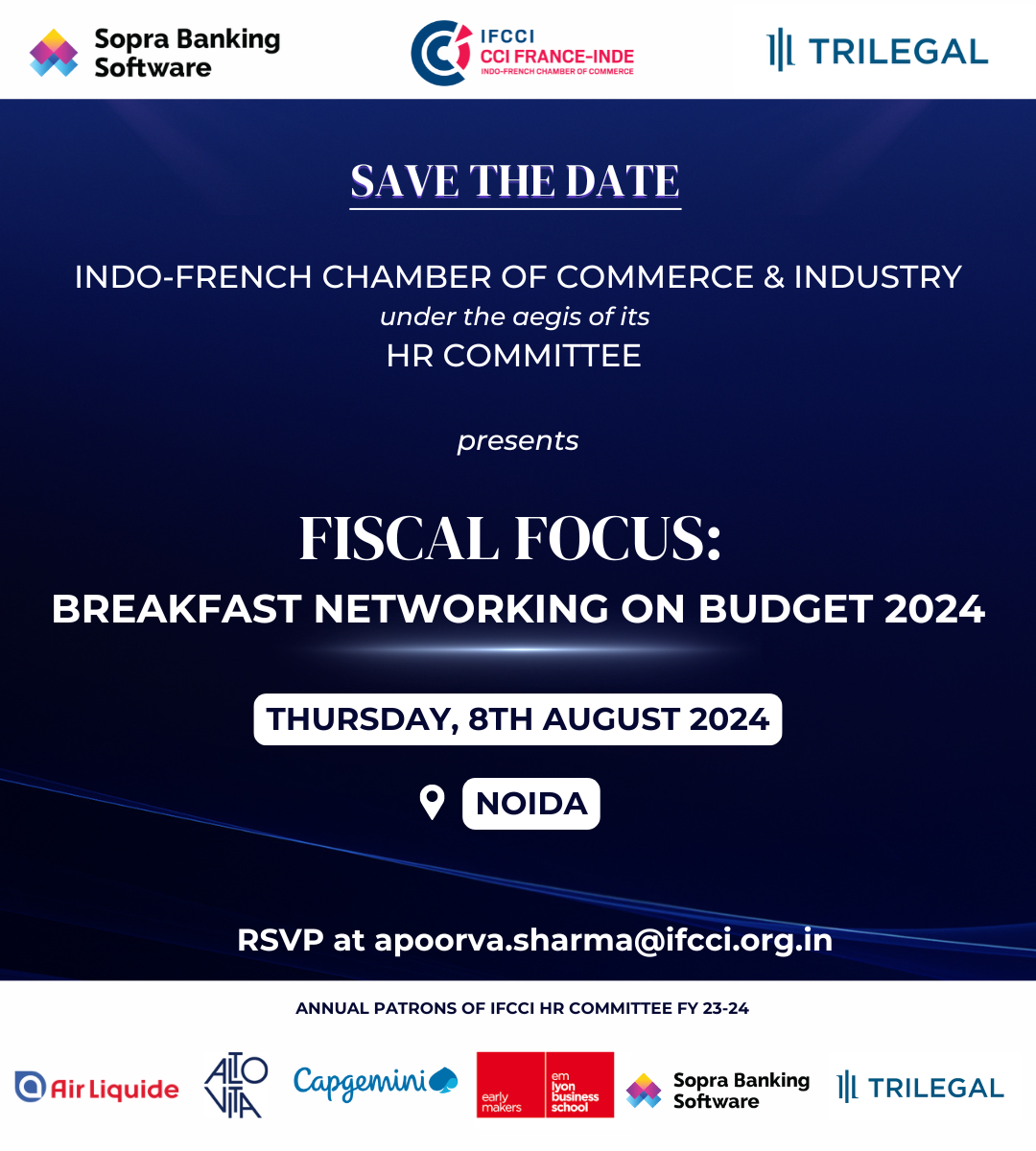 IFCCI HR Committee in association with Sopra Banking Software and Trilegal is organising a breakfast networking session on ‘Fiscal Focus: Budget 2024’, on Thursday, 8th August 2024 in a hybrid format in Noida, NCR.