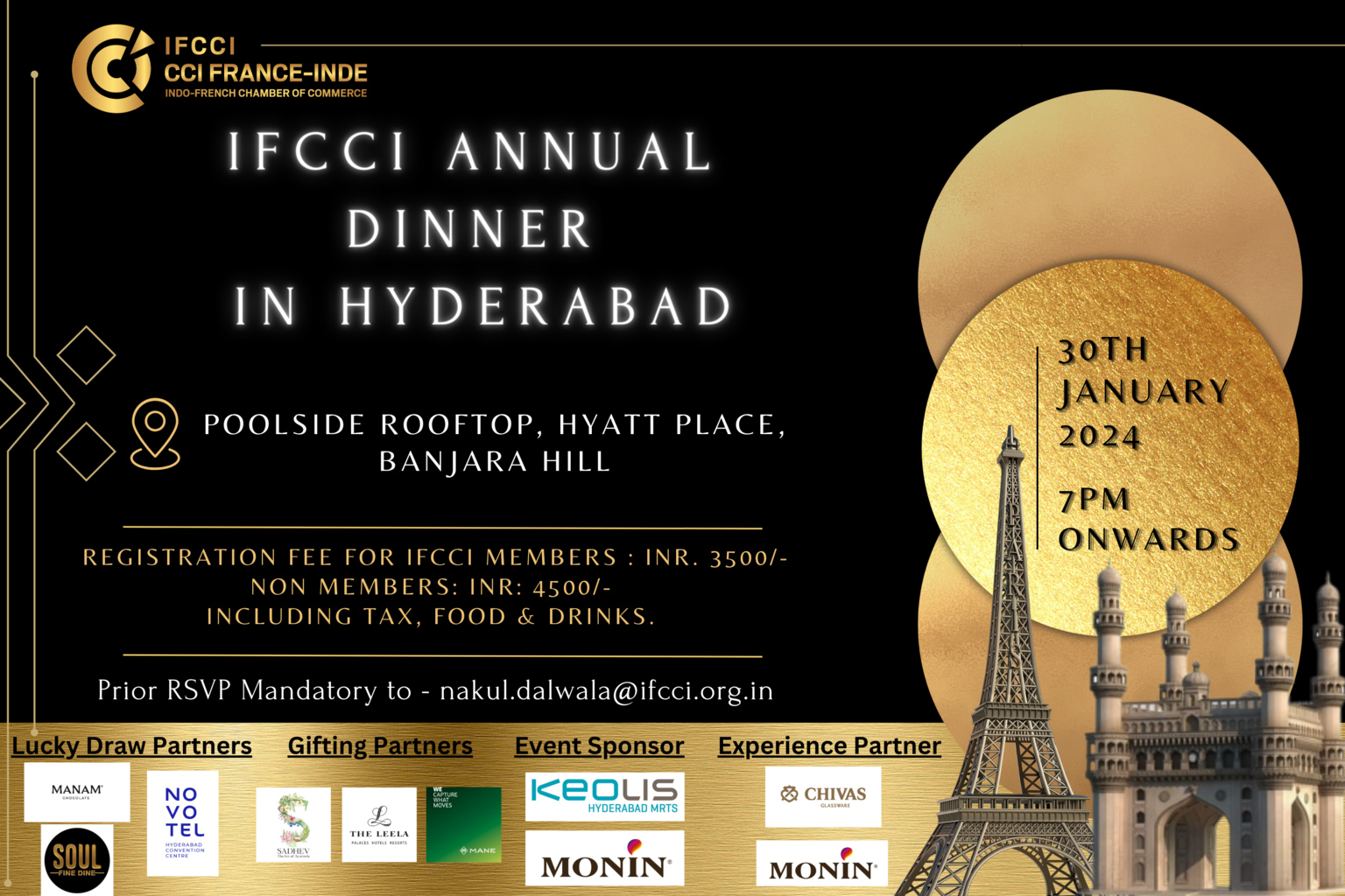The Indo-French Chamber of Commerce and Industry (IFCCI) is organizing its "IFCCI Annual Dinner 2024," in Hyderabad on Tuesday, 30th January 2024.