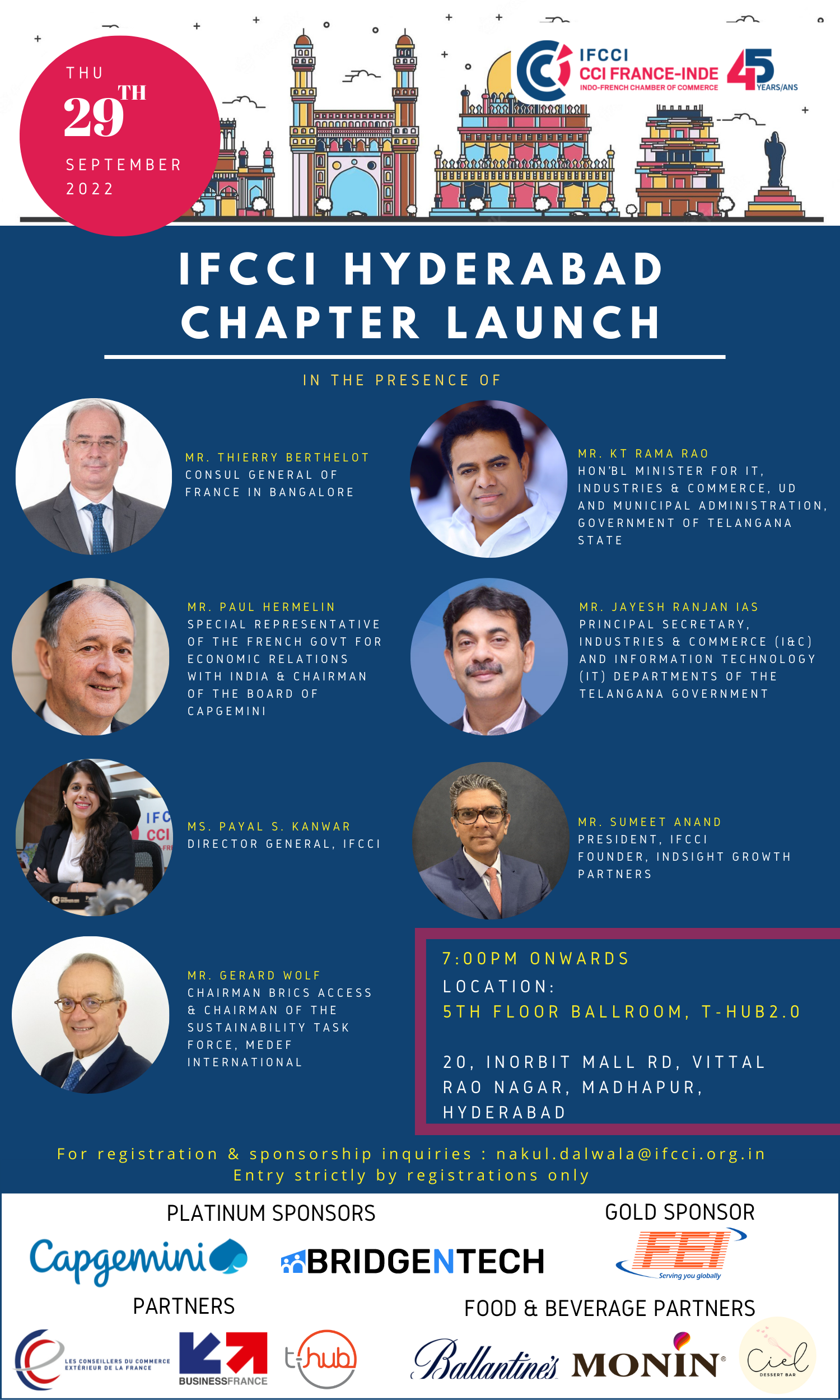 The Indo-French Chamber of Commerce & Industry (IFCCI) is pleased to officially #launch its new chapter in #Hyderabad out of T-Hub 2.0 and invites you to join this celebration on: