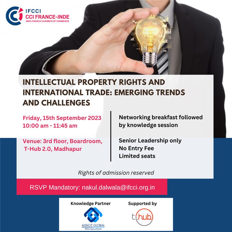 The Indo-French Chamber of Commerce and Industry (IFCCI) in partnership with Altacit Global is conducting a session on " Intellectual Property Rights and International Trade: Emerging Trends and Challenges".