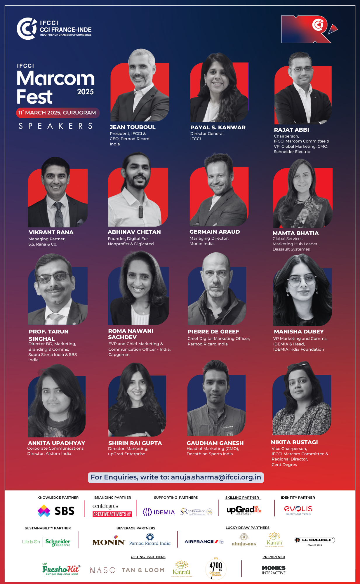 Indo-French Chamber of Commerce and Industry (IFCCI) is delighted to announce the first edition of the IFCCI MARCOM Fest, to be organized under the aegis of the IFCCI Marcom Committee, on 11th March 2025 at Gurgaon, from 2:30 PM - 7:30 PM. The Committee is led by Chairperson, Mr. Rajat Abbi, Chief Marketing Officer at Schneider Electric India, and Vice-Chairperson, Ms. Nikita Rustagi, Regional Director, centdegrés India.