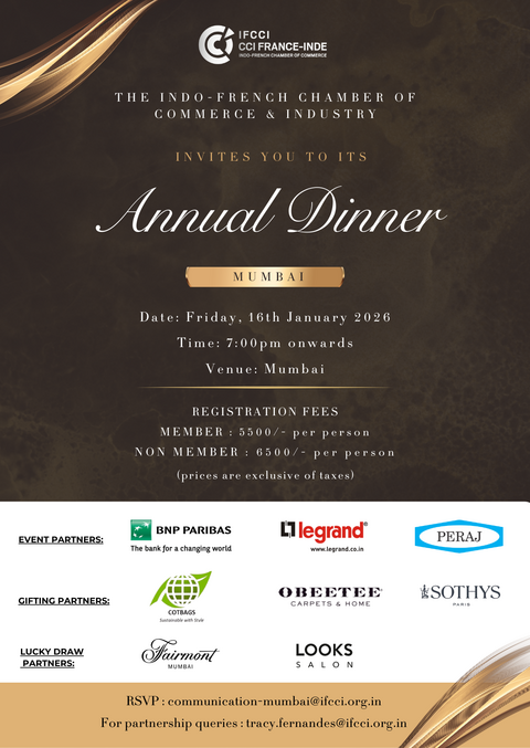 The Indo-French Chamber of Commerce and Industry (IFCCI), is organising its biggest networking event, the Annual Dinner in Mumbai.