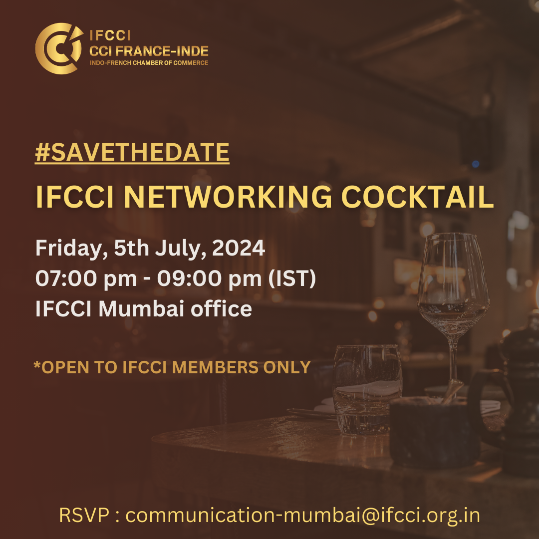The Indo-French Chamber of Commerce and Industry, Mumbai is organizing a Networking Cocktail on Friday, 5th July 2024 – 7 PM – 9 PM at IFCCI Mumbai Office.
