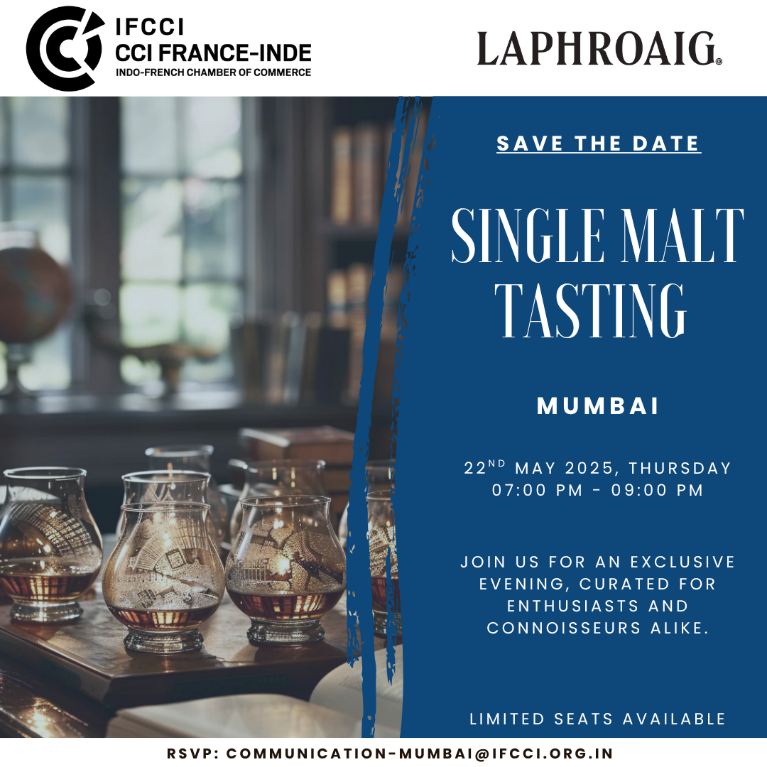 The Indo-French Chamber of Commerce & Industry (IFCCI) in association with Suntory Global Spirits is pleased to invite you for a Single Malt Tasting on Thursday, 22nd May 2025 in Mumbai.