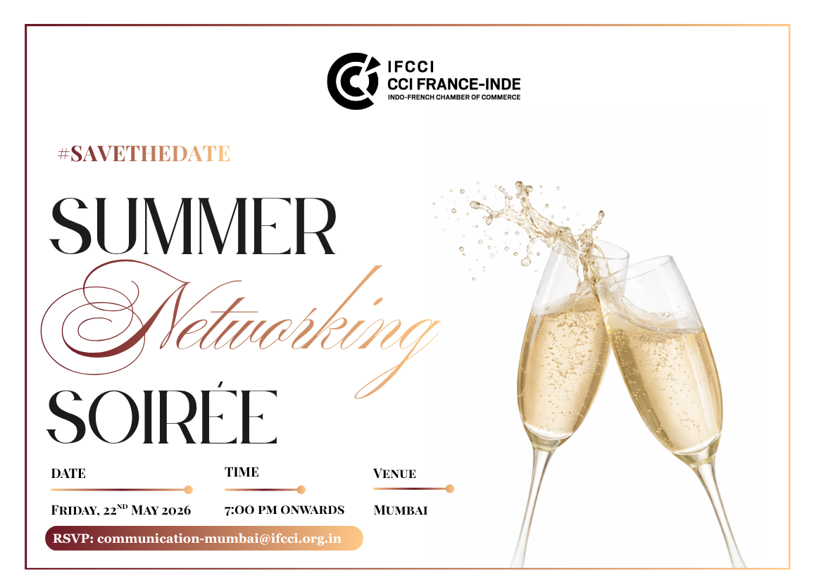 The Indo-French Chamber of Commerce and Industry (IFCCI), Mumbai invites you to its Summer Networking Soirée, an exclusive evening of engaging conversations, meaningful connections and delightful refreshments at our networking evening.