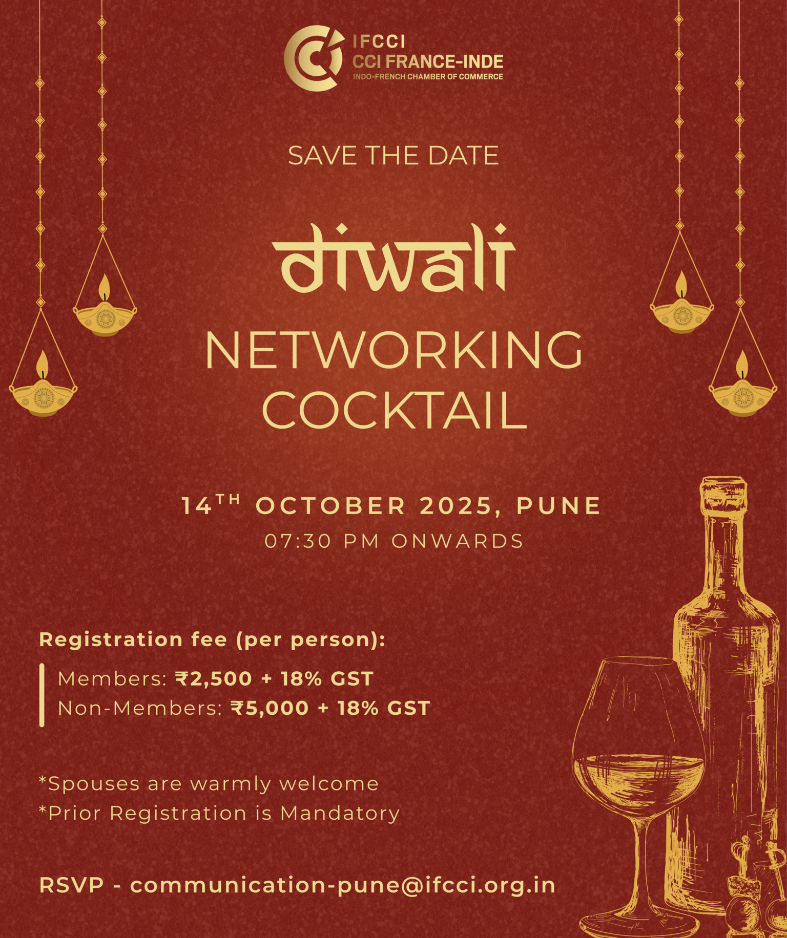 The Indo-French Chamber of Commerce and Industry (IFCCI), Pune cordially invites you to a Diwali Networking Cocktail on Tuesday, 14th October 2025 in Pune.