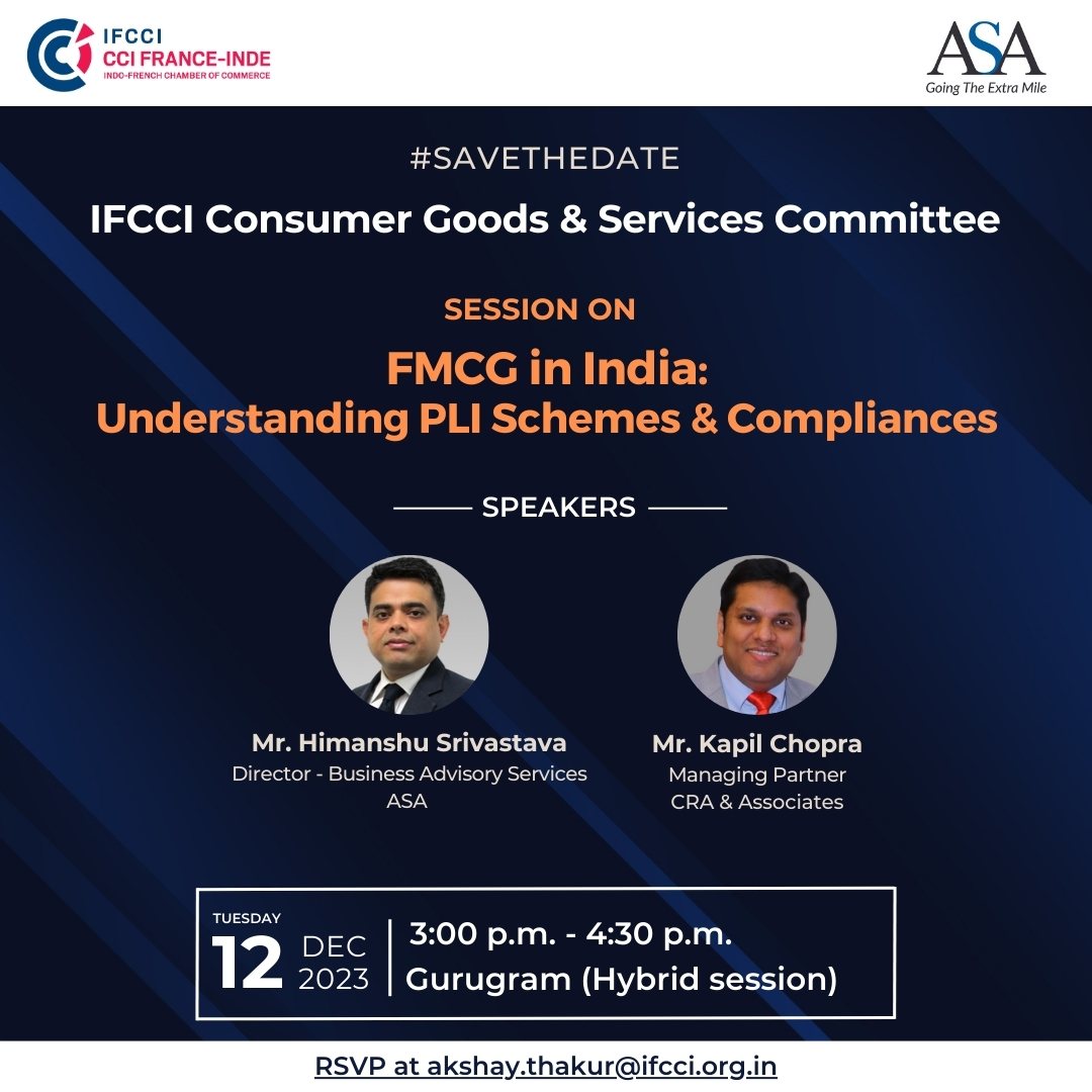 IFCCI Consumer Goods & Services Committee, in association with ASA, is organizing a Session on FMCG in India: Understanding PLI Schemes & Compliances,