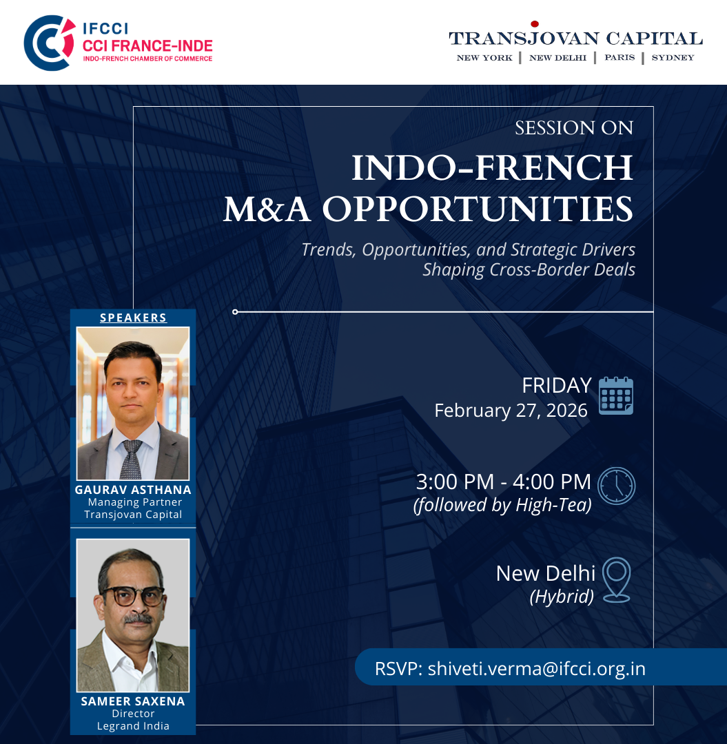 IFCCI, in association with Transjovan Capital, is organising a Session on Indo-French M&A Opportunities on 27th February 2026, in New Delhi.