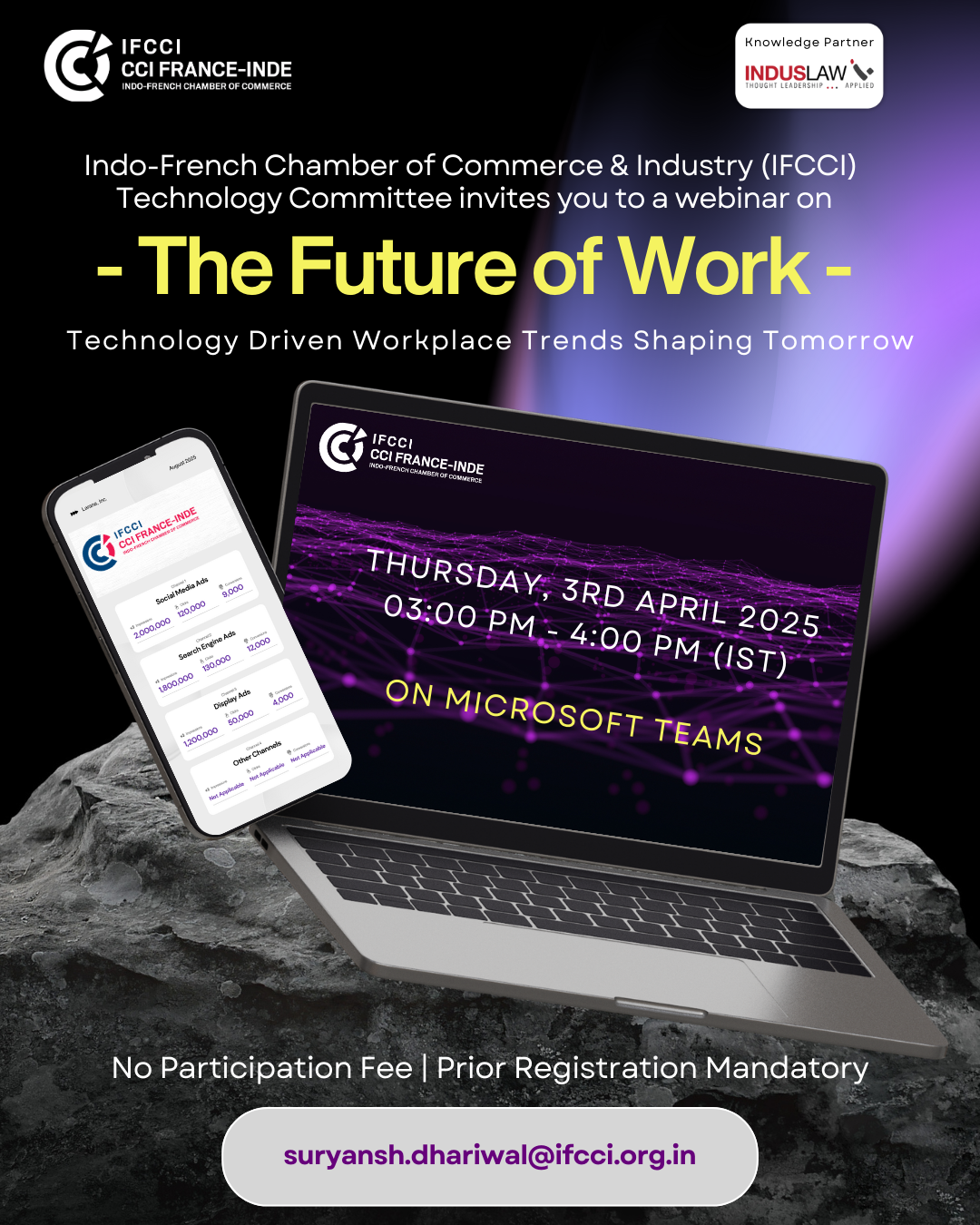 The IFCCI Technology Committee is organising a webinar on - The Future of Work: Technology-Driven Workplace Trends Shaping Tomorrow