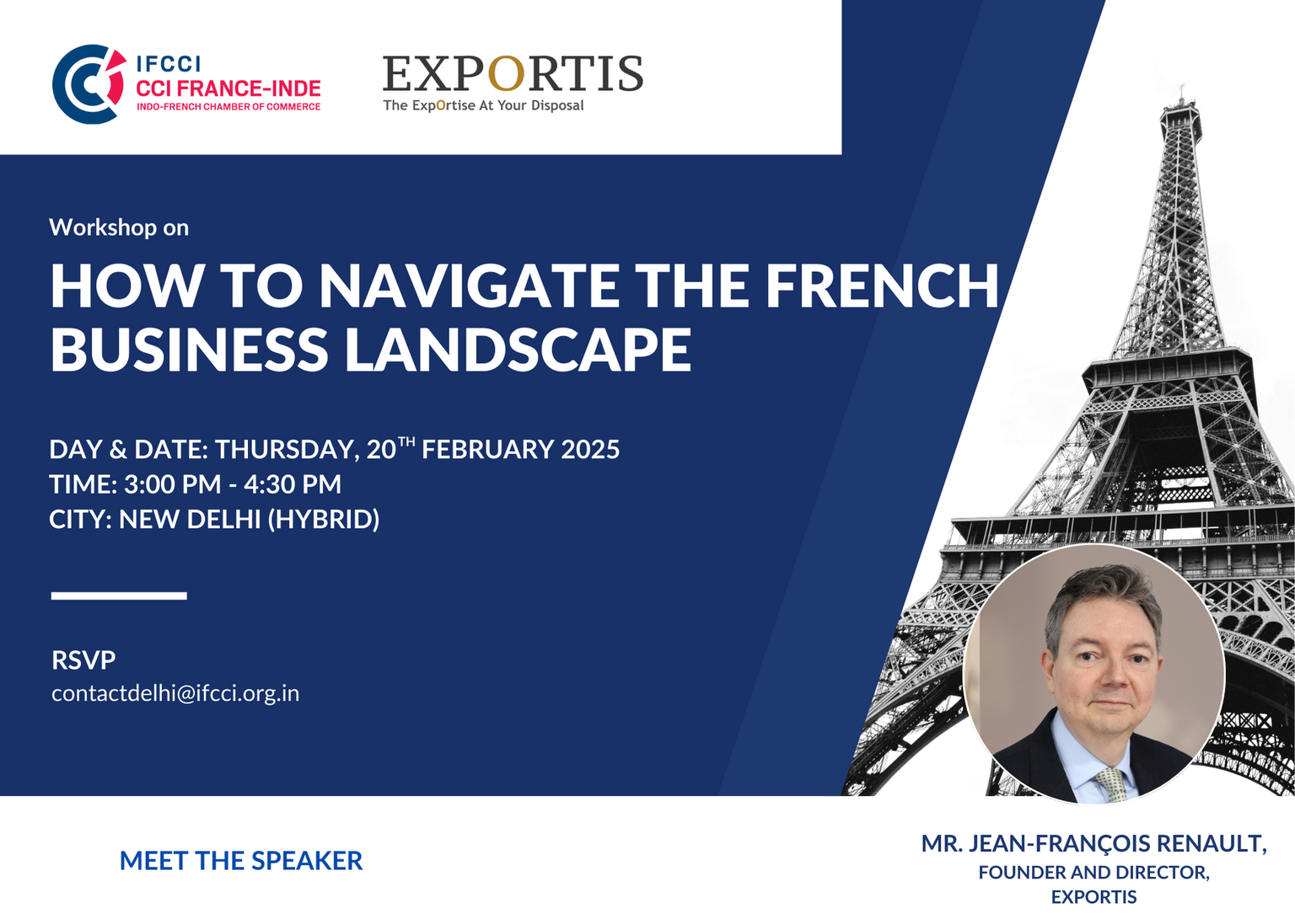 IFCCI in association with EXPORTIS is organizing a workshop on 'How to Navigate the French Business?' on Thursday, 20th of February 2025.