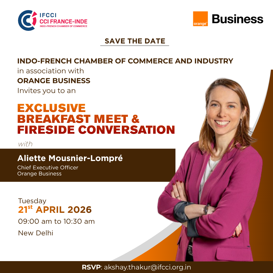 The Indo-French Chamber of Commerce & Industry (IFCCI), in association with Orange Business, is pleased to invite you to an exclusive Breakfast Meet and Fireside Conversation with Ms. Aliette Mousnier-Lompré, CEO, Orange Business, scheduled to take place on Tuesday, 21st April 2026, in New Delhi.
