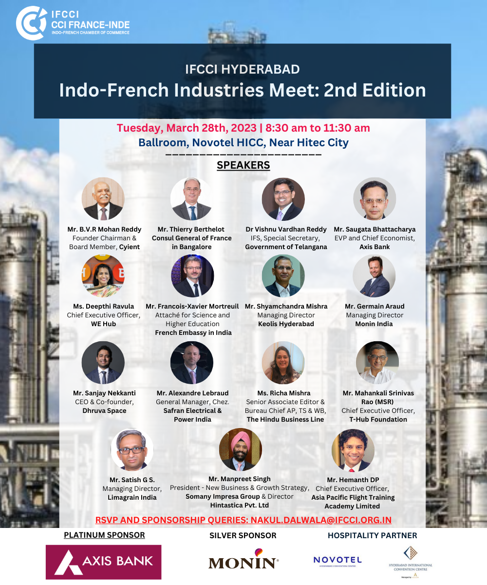 The Indo-French Chamber of Commerce & Industry (Hyderabad) is organizing its 2nd edition of Indo-French Industries Meet.