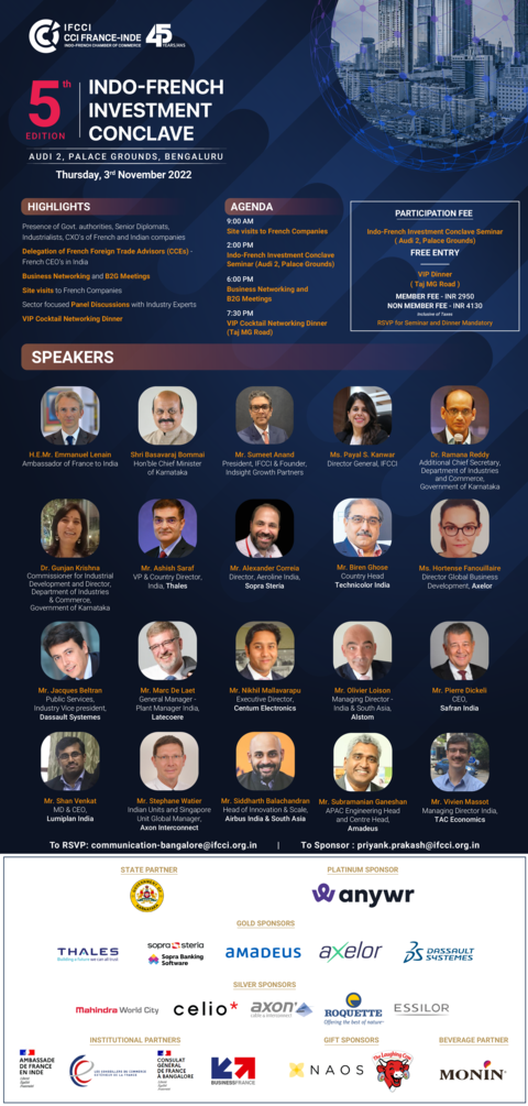 - Showcase to the entire Indo-French business network in India and France through this proven platform the French investments already present in the state of Karnataka