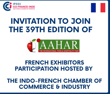 Following the success of the inaugural French Pavilion at AAHAR 2024, the Indo-French Chamber of Commerce & Industry (IFCCI) is pleased to announce its assistance for French companies participating in the 39th edition of AAHAR 2025. The International Food & Hospitality Fair will be jointly organized by the Ministry of Food Processing Industries (MoFPI) and the India Trade Promotion Organisation (ITPO) from March 4-8, 2025, at the prestigious Bharat Mandapam in New Delhi.