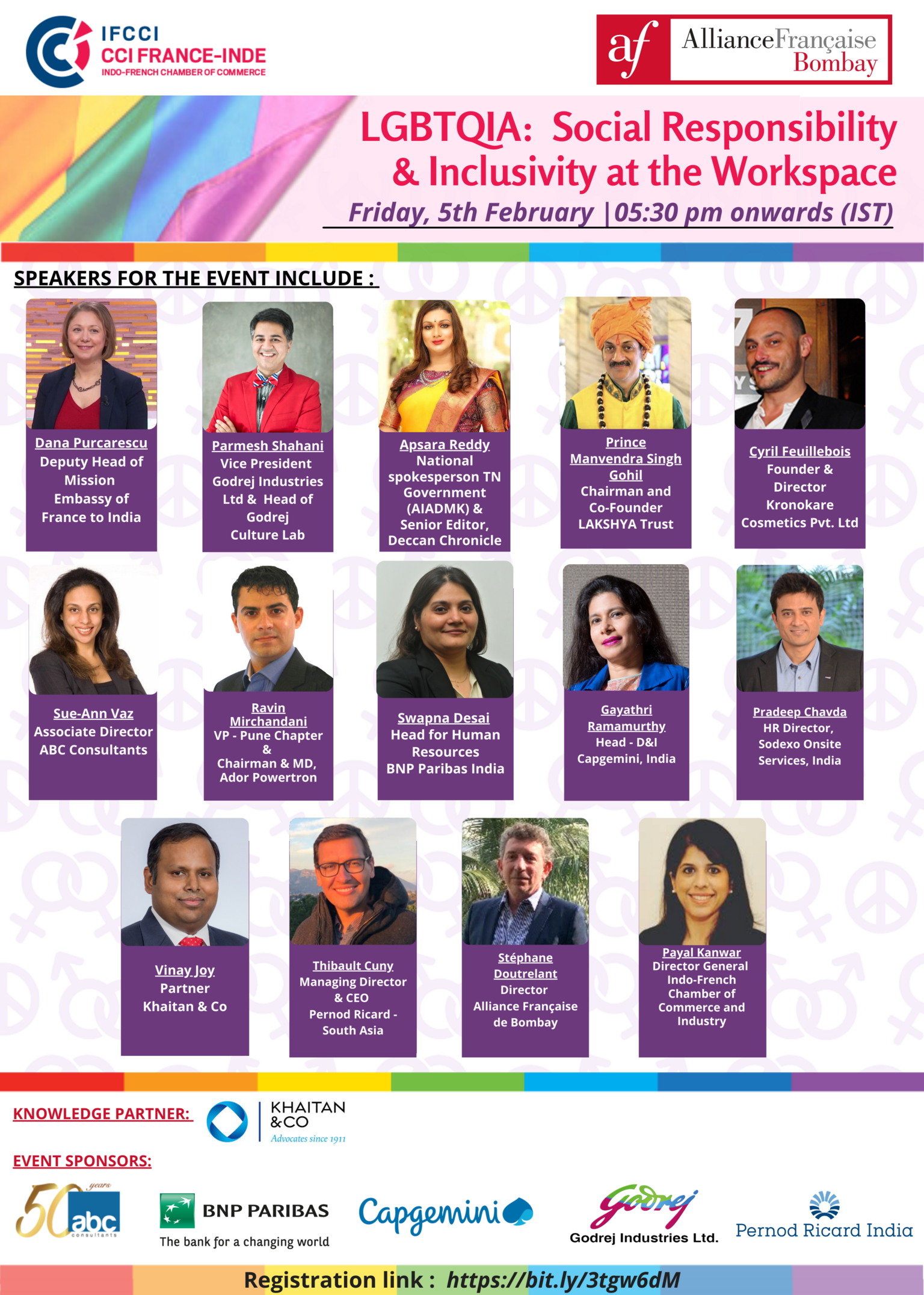 IFCCI in association with Alliance Française de Bombay is organizing a focused webinar on LGBTQIA: Social Responsibility and Inclusivity at workplace