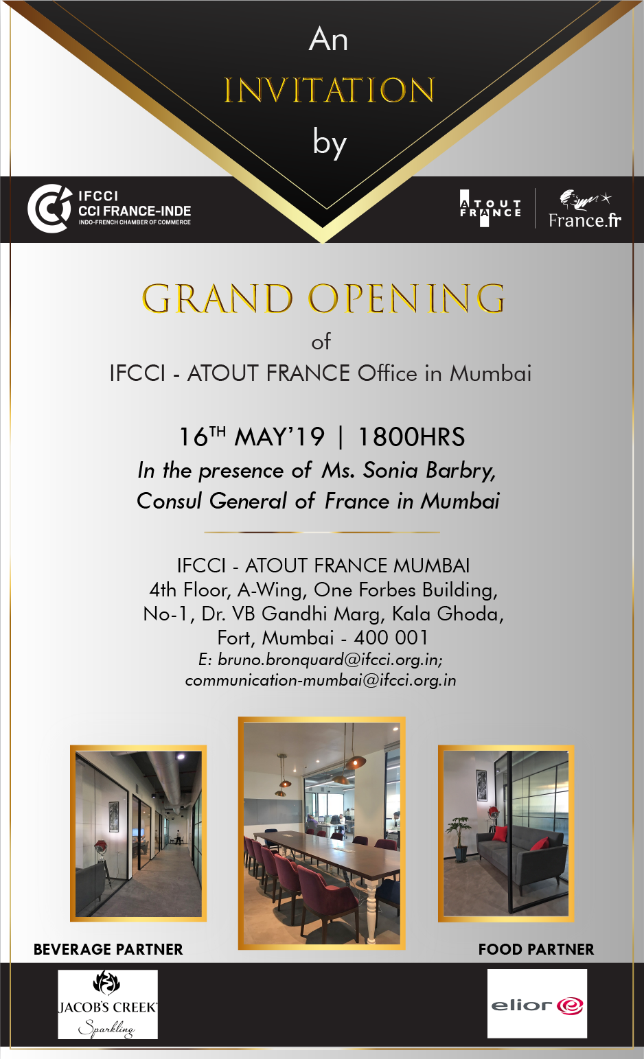 IFCCI is pleased to invite you for the Grand Opening of Mumbai Office in the honour and presence of Ms. Sonia Barbry, Consul General of France in Mumbai.