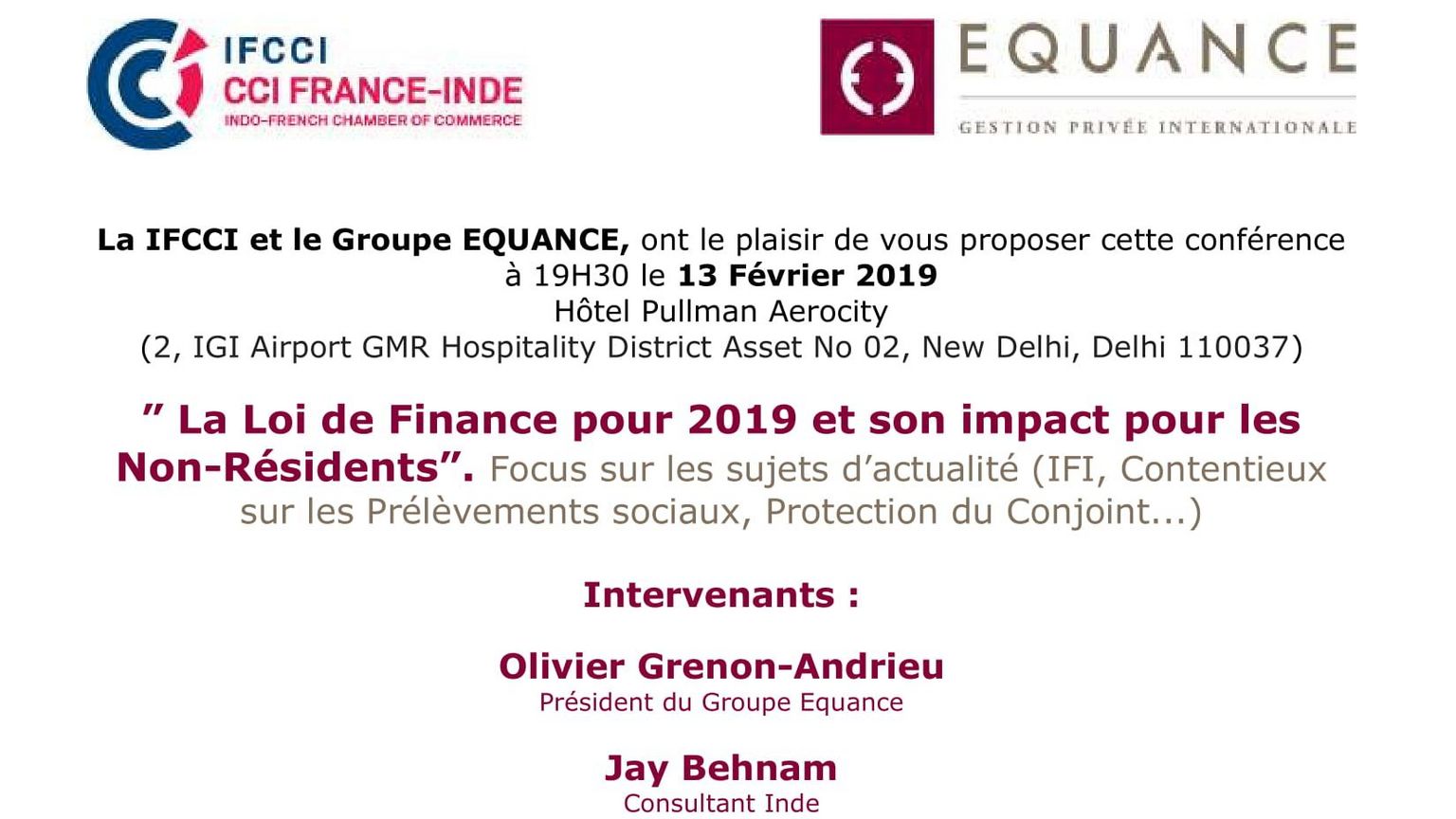 Le groupe EQUANCE, société de Conseil en Gestion Privée, spécialiste des problématiques liées aux Français non-résidents, vous propose cette conférence pour appréhender les aspects civils internationaux et les incidences de la loi de finance 2018 sur le patrimoine des Français résidant en Inde et vous présenter les stratégies d’investissements adaptées. Notre expert répondra à vos questions sur ces thématiques.