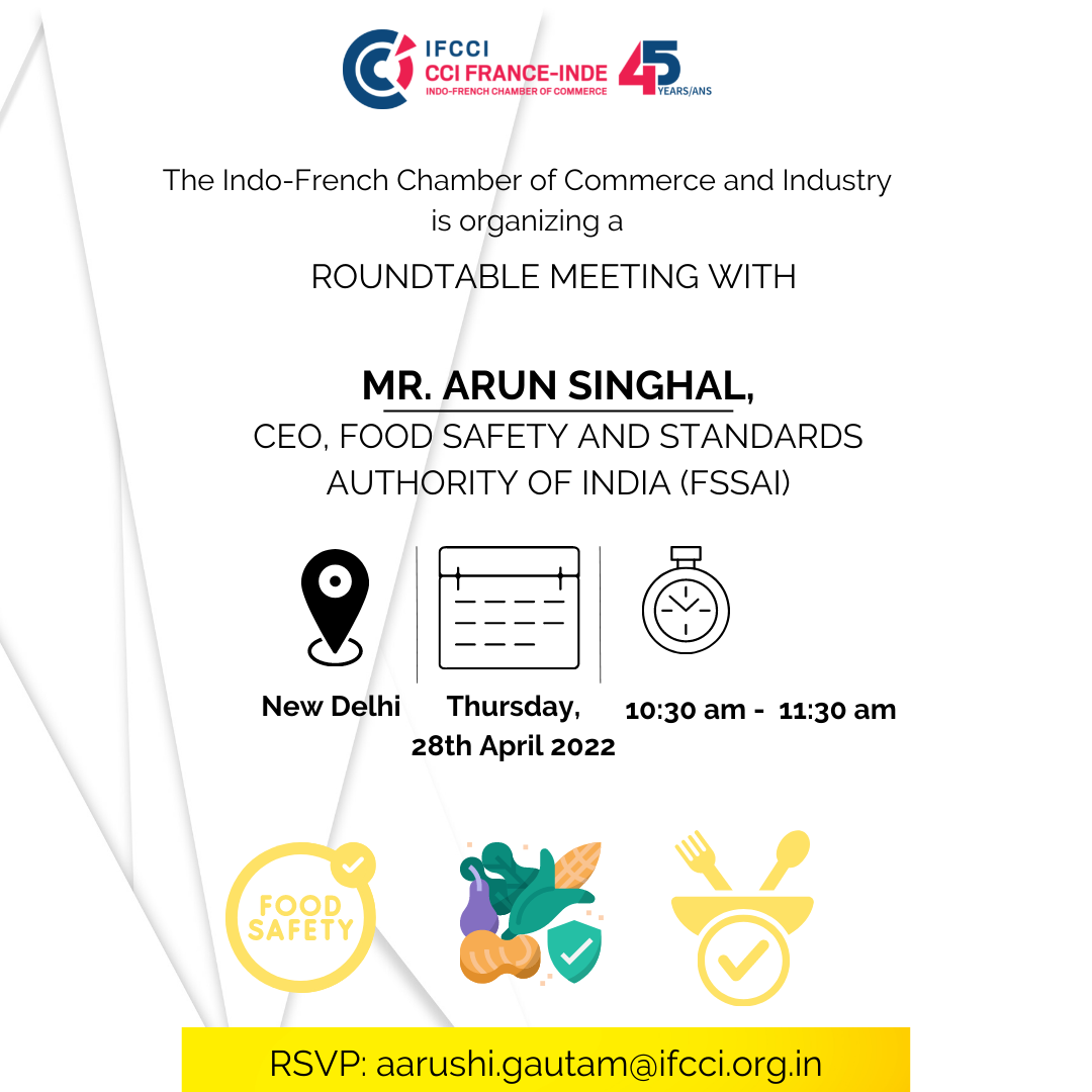 The objective of the meeting will be to discuss FSSAI Regulations that are of interest to the French companies in India, to better understand the various regulations governing the food industry and to share the challenges and issues that French companies face.