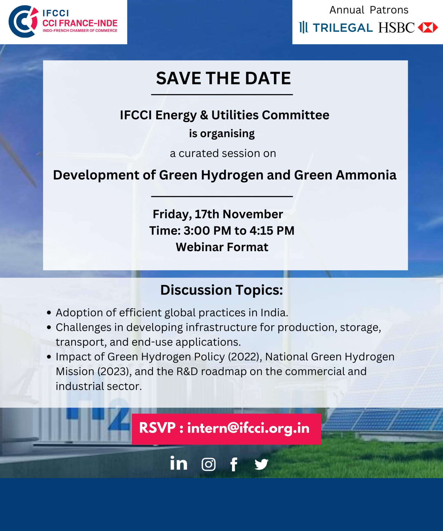 IFCCI Energy & Utilities Committee is organising a virtual Session on Indo-French Development of Green Hydrogen and Green Ammonia, on 17th November'23