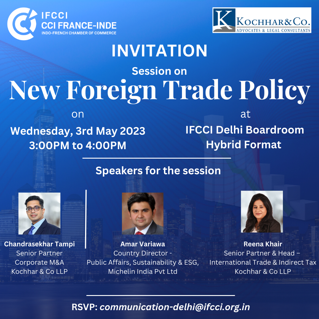 IFCCI in association with Kochhar & Co. is organizing a Hybrid Session on New Foreign Trade Policy on 3rd May 2023.