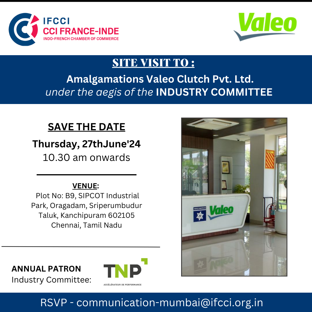 The Indo-French Chamber of Commerce and Industry (IFCCI) in association with Valeo India is organizing a site visit to Amalgamations Valeo Clutch Pvt. Ltd in Chennai.