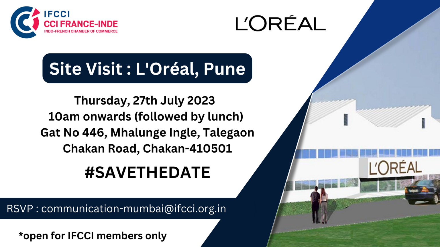 IFCCI Mumbai in association with L’Oréal, is organizing a plant visit to L’Oréal’s manufacturing facility in Chakan, Pune on 27th of July at 10am.