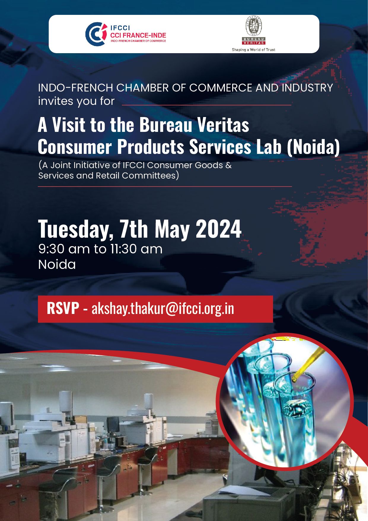 IFCCI, under the aegis of its Consumer Goods and Services and Retail Committees, is organising a visit of its members to the Bureau Veritas Consumer Products Services Lab, Noida on Tuesday, 7th May 2024 from 9:30 am to 11:30 am.
