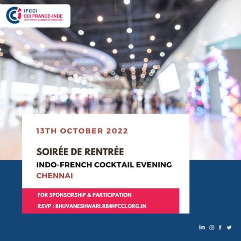 Indo-French Chamber of Commerce and Industry is organizing Members' Networking Cocktail -Soirée de Rentrée in Chennai