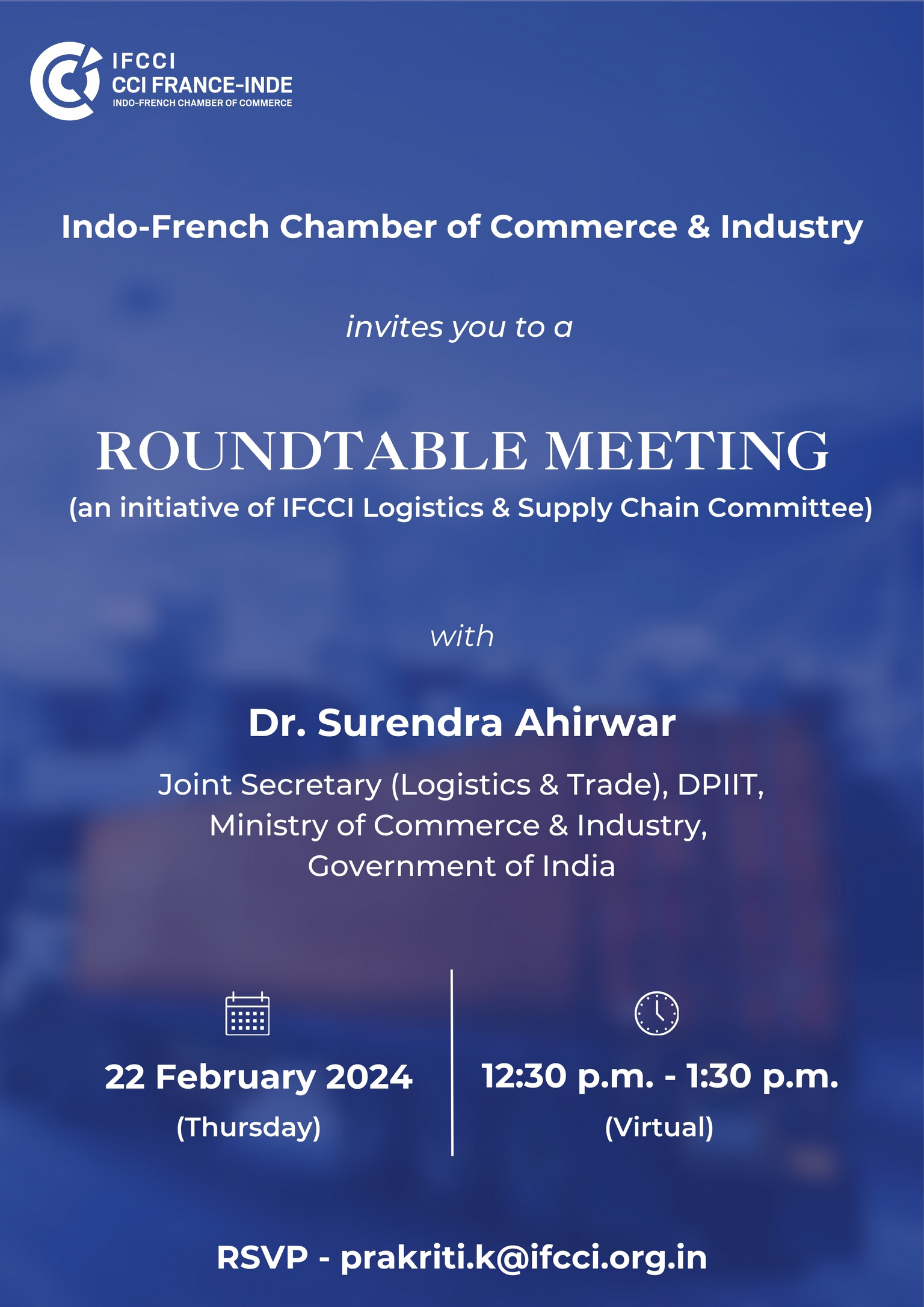 Virtual Roundtable Meeting with Dr. Surendra Ahirwar, JS (Logistics & Trade), DPIIT, Govt. of India, on 22nd February 2024.