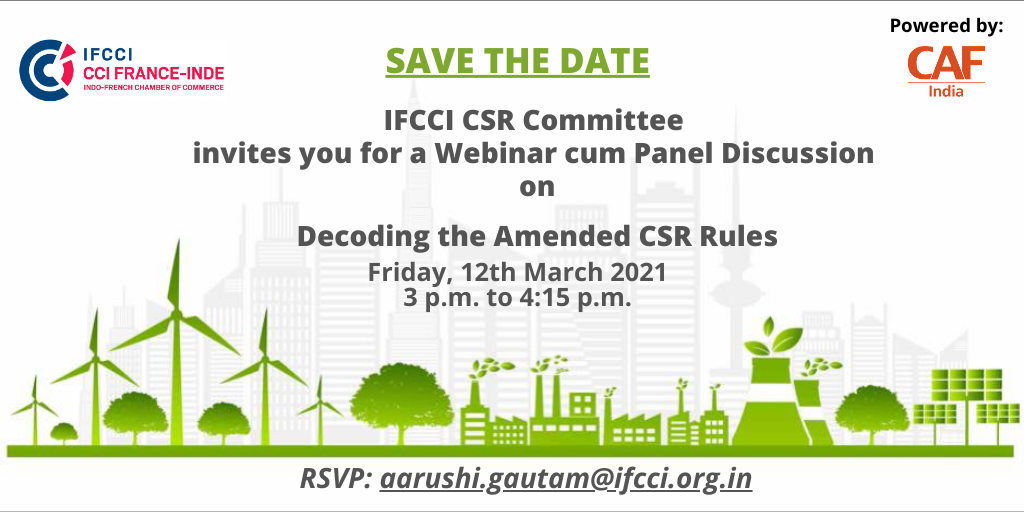 IFCCI is pleased to invite you for a Webinar cum Panel Discussion on Decoding the Amended CSR Rules on Friday,12th March,2021 3:00 pm to 4:15 pm