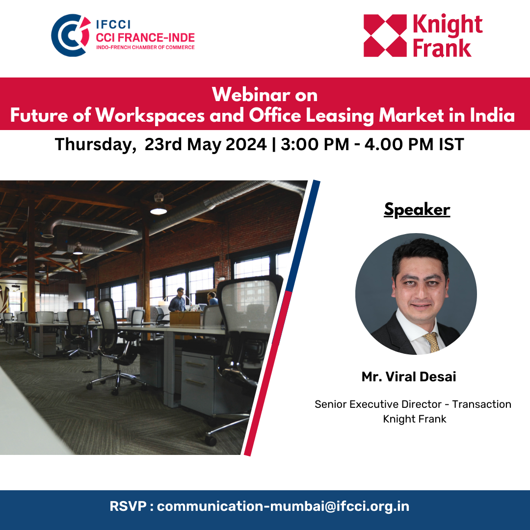 The Indo-French Chamber of Commerce & Industry, Mumbai in association with Knight Frank is organizing a webinar on Future of Workspaces & Office Leasing Market in India.