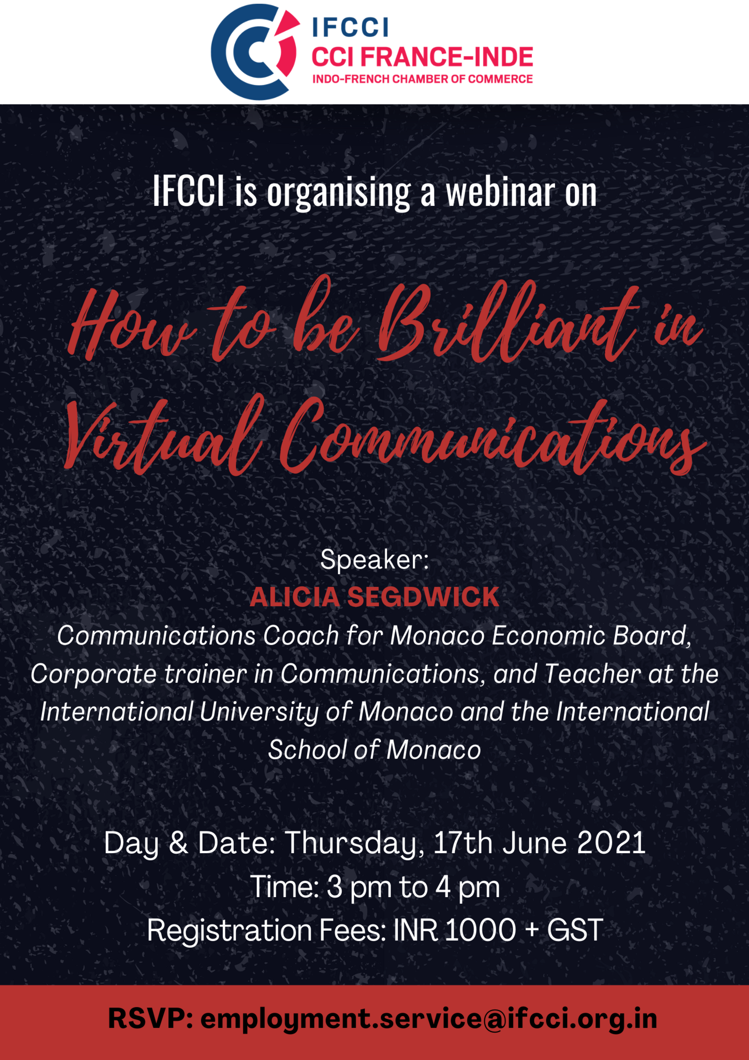 The Indo-French Chamber of Commerce & Industry is organising a training on “How to be Brilliant in Virtual Communications”