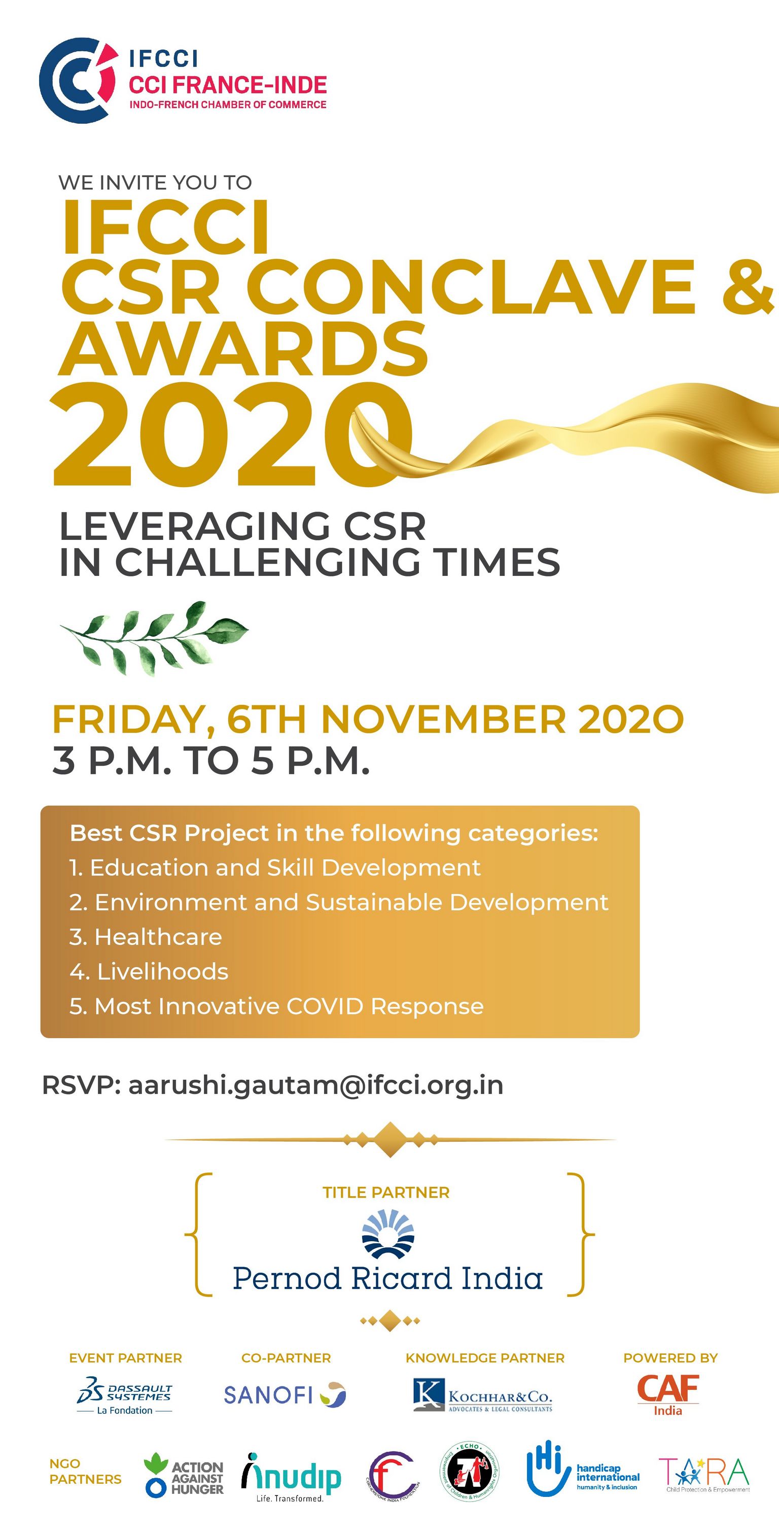 Indo-French Chamber of Commerce & Industry (IFCCI) is organizing its flagship CSR Conclave and Awards 2020. This will be a virtual format.