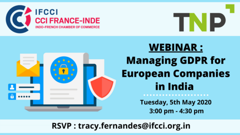 IFCCI is organising a webinar on Introduction to Managing GDPR for European Companies in India in association with TNP Consultancy on Tuesday, 5th May