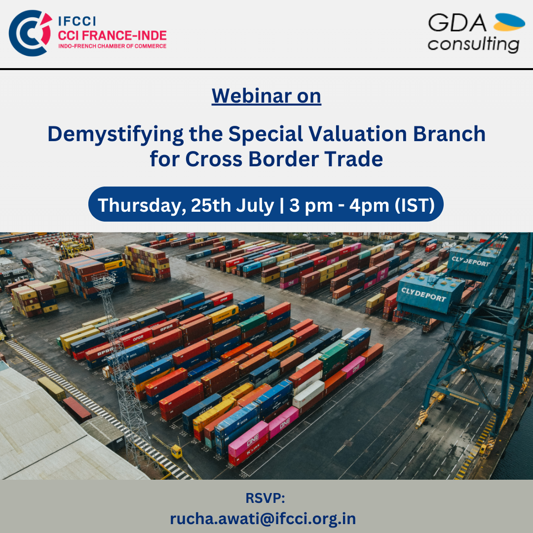 The Indo-French Chamber of Commerce and Industry (IFCCI), Pune in association with GDA Consulting is organizing a webinar on 'Demystifying The Special Valuation Branch (SVB) for Cross Border Trade'