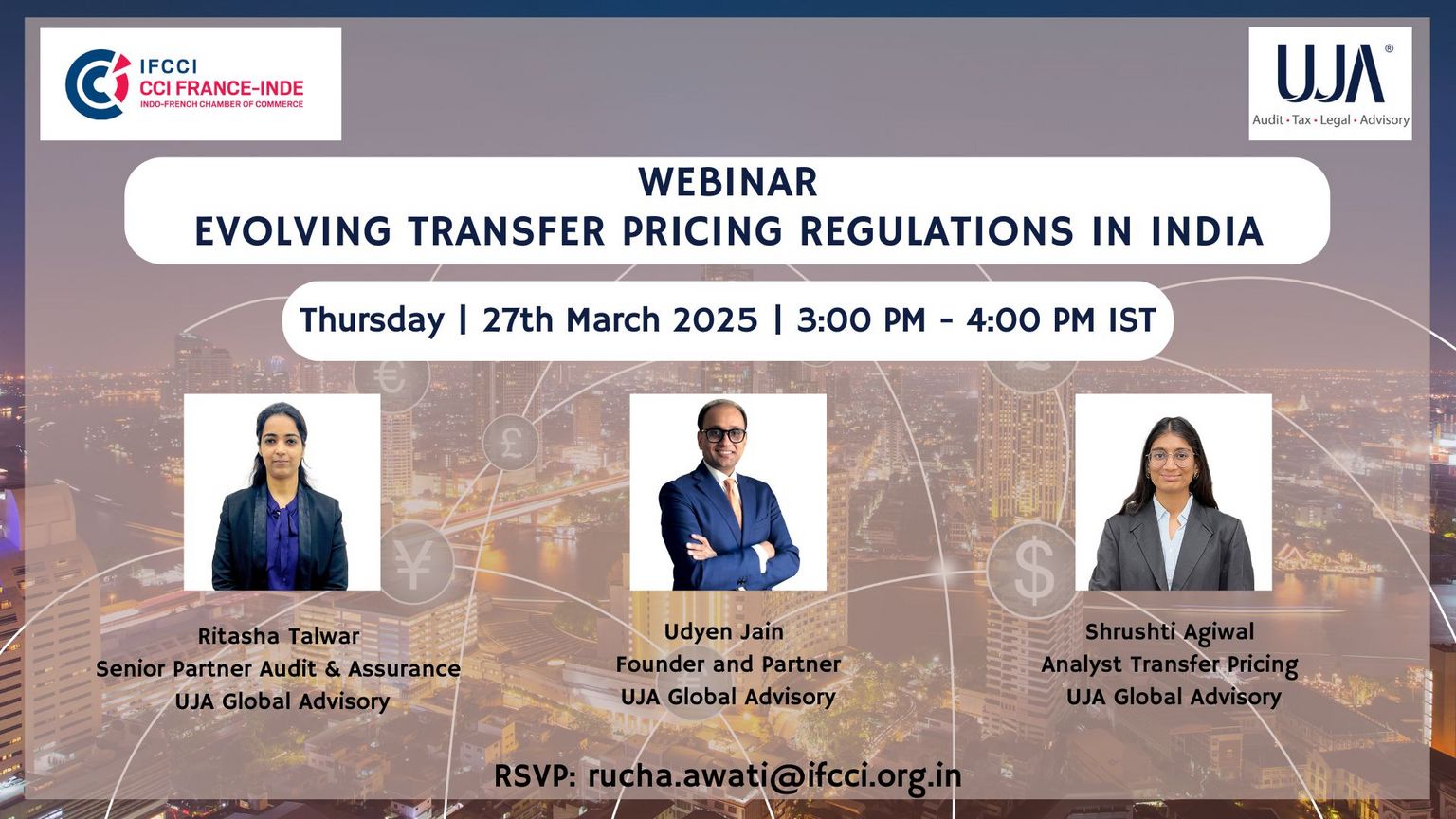 The Indo-French Chamber of Commerce & Industry (IFCCI), Pune in association with UJA Global Advisory is organizing a webinar on Evolving Transfer Pricing Regulations in India.