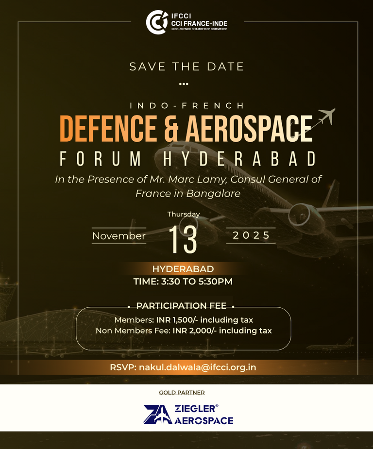 IFCCI is pleased to announce the first-ever Indo-French Defence & Aerospace Forum in Hyderabad, scheduled for Thursday, 13th November 2025.