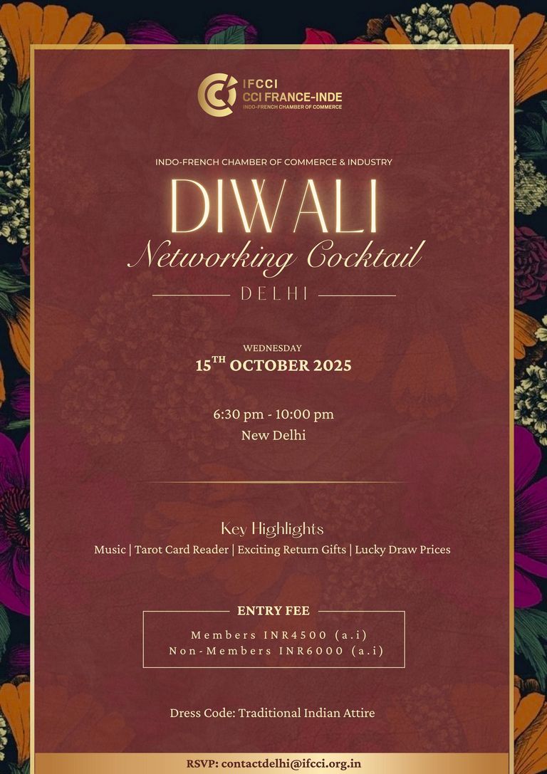 IFCCI Delhi is organizing a Diwali Networking Cocktail on Wednesday, 15th October 2025 from 6:30PM to 10:00PM