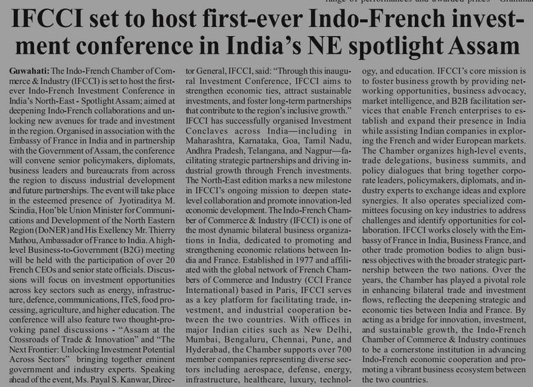 Aimed at deepening Indo-French collaborations & unlocking new avenues for trade & investment in the North-East.