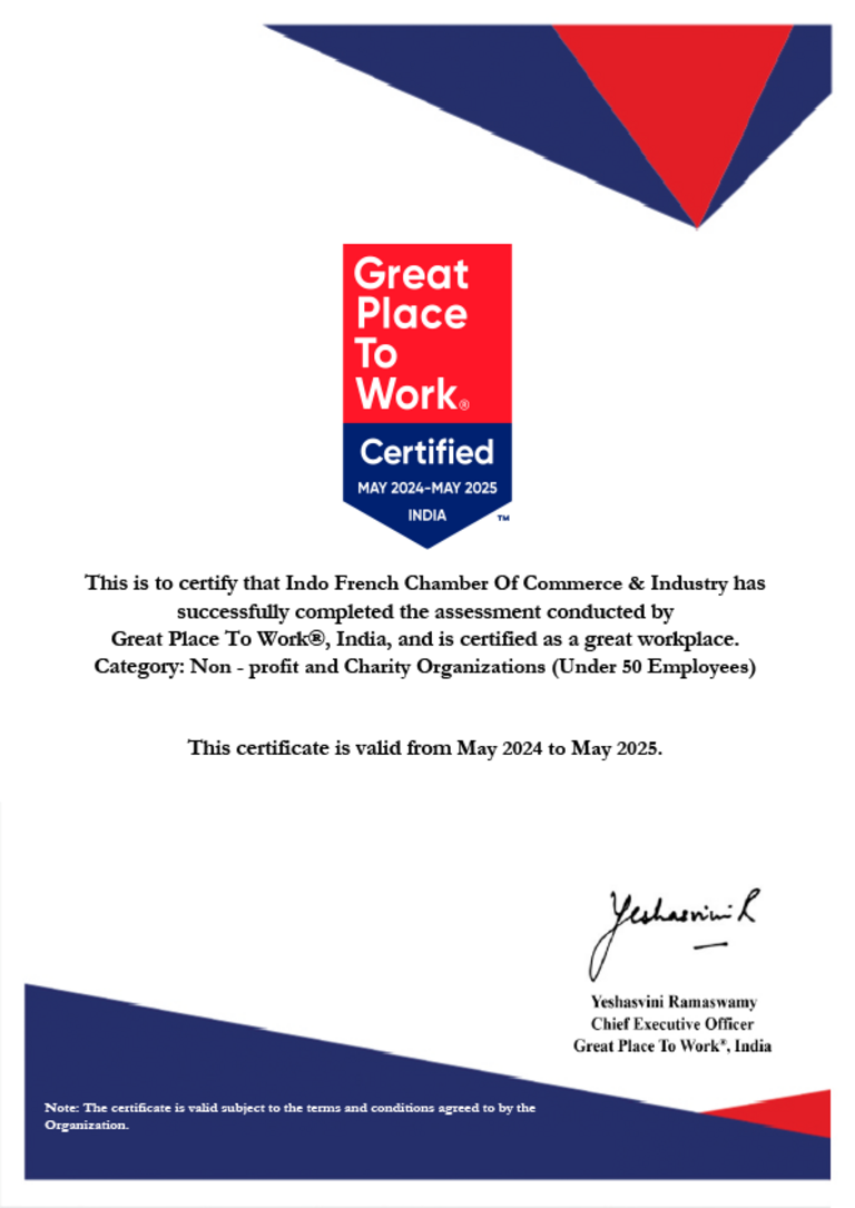 IFCCI has been certified as a Great Place to Work by the Great Place to Work® Institute (India).