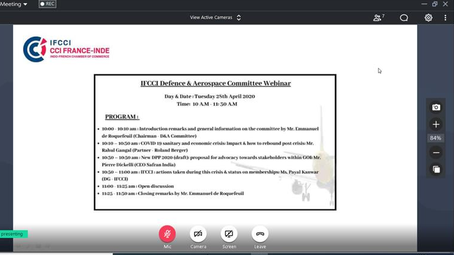 With the ongoing health crisis in the world and in India, the Indo-French Chamber of Commerce & Industry (IFCCI) under the aegis of the IFCCI Aerospace & Defence Committee organised a PAN-India webinar for its committee members on Tuesday, the 28th April 2020, to understand and learn from one another during this challenging time.