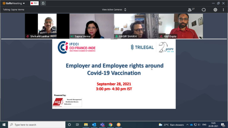 IFCCI HR Committee organised a webinar on Employer and Employee Rights around Covid-19 on 28th September 2021
