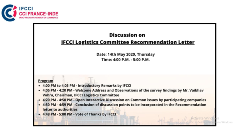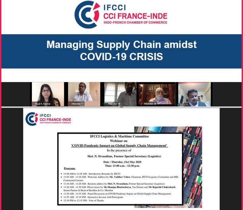 The Logistics and Maritime Committee of Indo-French Chamber of Commerce & Industry (IFCCI) organized a webinar on 21st May 2020 on Managing Supply Chain amidst COVID-19 CRISIS in the presence of Shri. N. Sivasailam, Former Special Secretary (Logistics).
