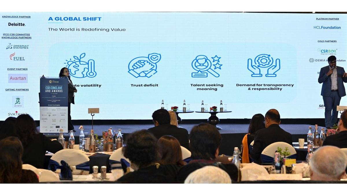 The event also included a thematic presentation titled ‘The Way Forward, Together: India’s Leadership in the Purpose Economy’, delivered by Ms. Manasi Diwan, Vice President – Impact Practice, and Mr. Adarsh Trivedi, Assistant Vice President, Government & Technology at CSRBOX.