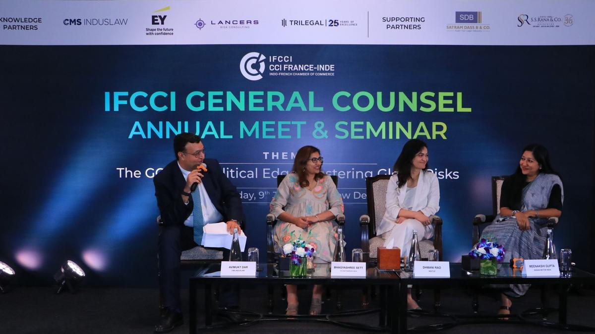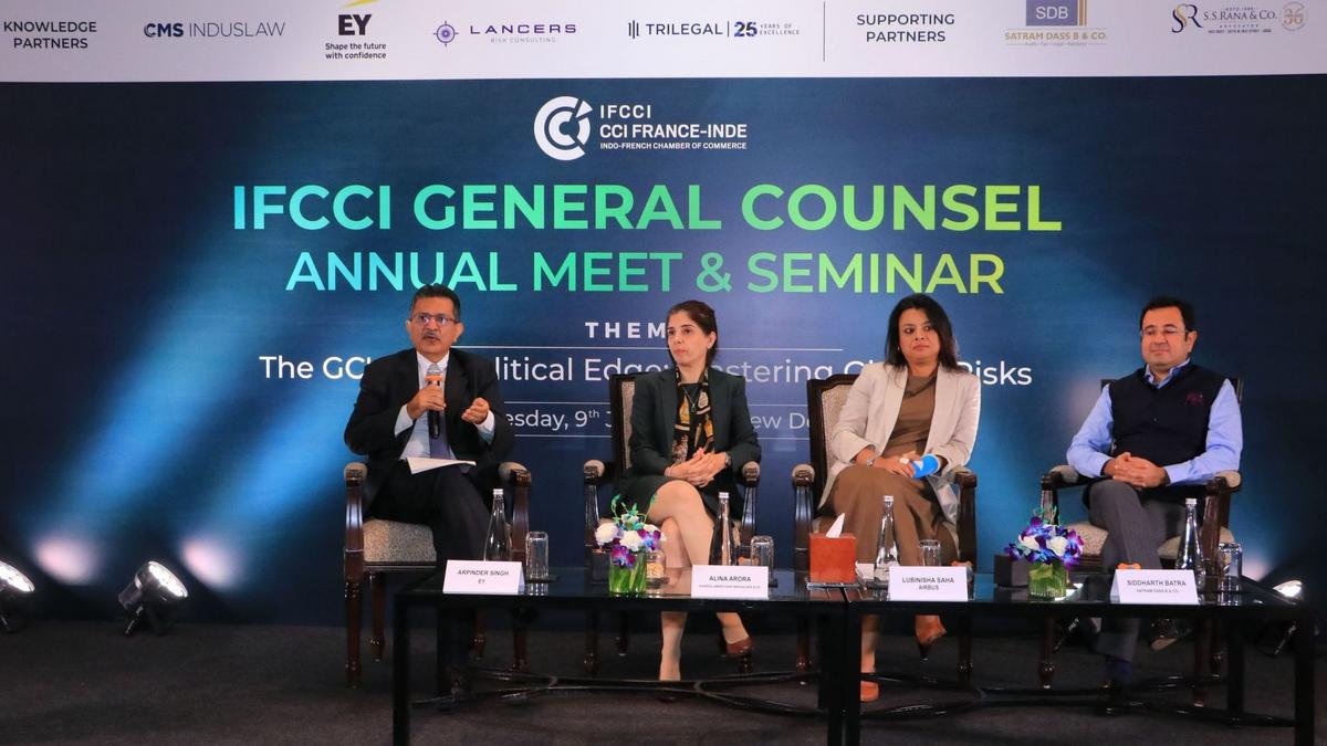 The context-setting panel on Connecting the Dots - Geopolitics, Law & the GC’s Expanding Mandate, moderated by Mr. Arpinder Singh Global Markets & India Leader - Forensic & Integrity Services, EY, featured a dynamic and insightful exchange with Ms. Alina Arora, Partner, Shardul Amarchand Mangaldas & Co., Ms. Lubinisha Saha, General Counsel, India & International, Airbus & Chairperson - IFCCI GC & Corporate Affairs Committee, and Mr. Siddharth Batra, Managing Partner, Satram Dass B & Co.