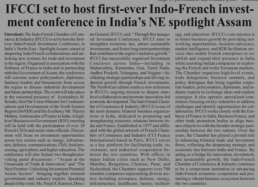 IFCCI hosts first-ever Indo-French investment conference in India's North-East: Spotlight Assam