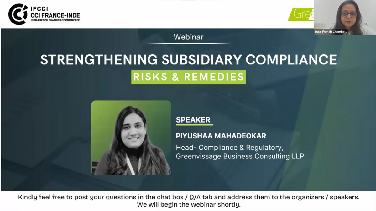 The Indo-French Chamber of Commerce & Industry (IFCCI), in collaboration with Greenvissage Business Consulting, organised a webinar on 'Strengthening Subsidiary Compliance: Risks & Remedies' on Wednesday, 21 January 2026.